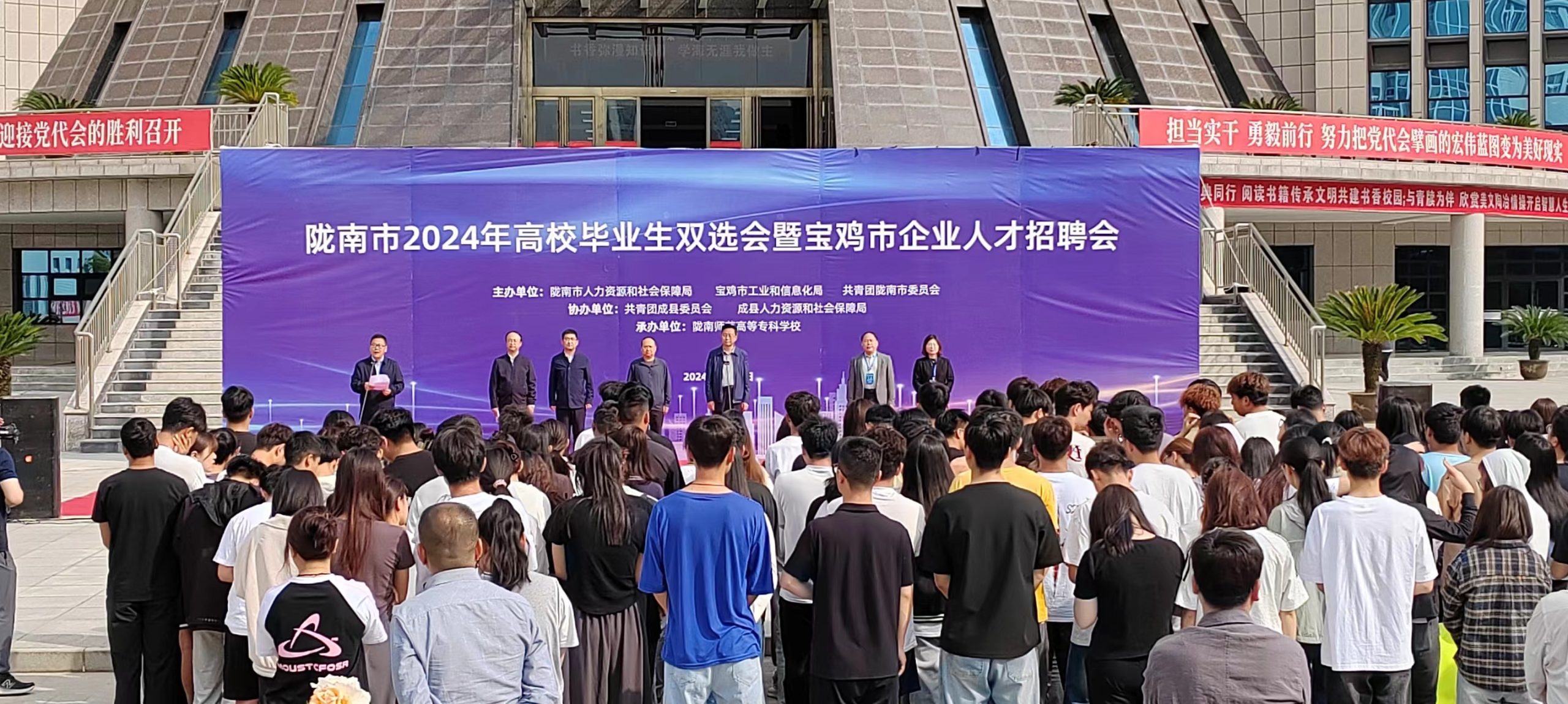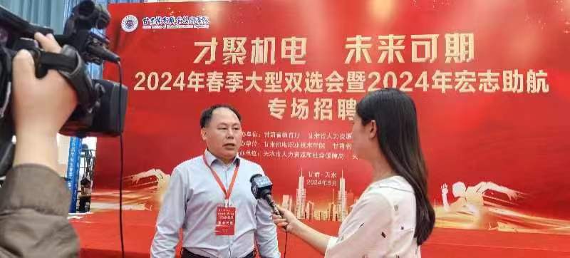 为深入贯彻党中央、国务院关于做好高校毕业生就业工作和培育专精特新中小企业的决策部署,落实工信部、教育部《关于开展“优企进校招才引智”专项行动的通知》要求,宝鸡市工信局于2024年5月11日至15日,组织吉利汽车部件、长美科技、关中工具、渭河工模具、巨成钛业、富士特钛业等20户专精特新、小巨人企业,组团赴甘肃工业职业技术学院、甘肃机电职业技术学院、陇南高等师范专科学校开展“优企进校 招才引智”校园招聘活动。宝鸡市工业发展促进中心支部书记、副主任张丙武接受甘肃电视台的采访,并在陇南高等师范专科学校招聘会开幕式上进行了宝鸡工业推介发言。