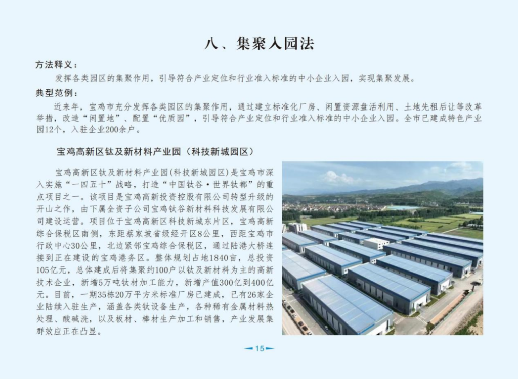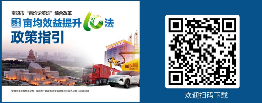 三是将“亩均论英雄”综合改革与宝鸡工业发展实际相结合,因地制宜帮扶企业提升亩均效益。本次发布的《工业企业亩均效益提升十法政策指引》,坚持从实际出发,因地制宜引导企业提升亩均效益水平,例如第八种方法“集聚入园法”,整合了全市15个特色产业园信息,并提供招商联系人电话和招商手册二维码,企业扫码即可下载查阅各园区详细招商信息,引导符合产业定位和行业准入标准的中小企业入园集聚发展,让企业转型有方向、发展有信心。