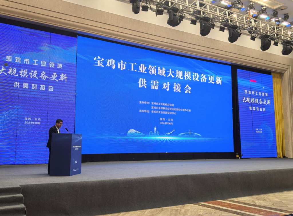 会上,宝鸡市工信局宣贯了国家和省市工业领域大规模设备更新最新政策,发布了《宝鸡市工业领域大规模设备更新供需清单》,其中设备更新需求项目共113个,预算总金额97.22亿元,信贷需求36.98亿元;设备供给企业共40家,供给各类设备94台(套);技改服务商共10家,提供技改服务产品24个;25家金融服务机构介绍了支持工业领域大规模设备更新金融服务产品。秦川机床、宝鸡机床、宝光集团、陕汽商用车、立邦软件、万企动力等6户供给侧企业代表推介了最新产品和服务能力,对需求企业现场给出了价格优惠。金融机构代表解读了支持工业领域设备更新金融政策,表示将主动对接做好融资跟进服务。会场外还设置了展洽区,为供需企业提供现场对接洽谈服务。